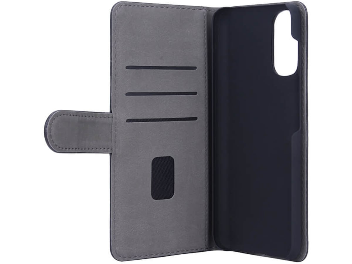 En smart och praktisk kombination av skyddande fodral och plånbok till smarttelefonen. Plånboksfodralet är tillverkat av konstläder. Smarttelefonen är skyddad och sitter säkert med ett inbyggt lock, och du har full tillgång till alla kontakter och funktioner. Inbyggd stativfunktion, perfekt för att titta på filmer på tåg eller flygplan. Stängs med magnetlås.