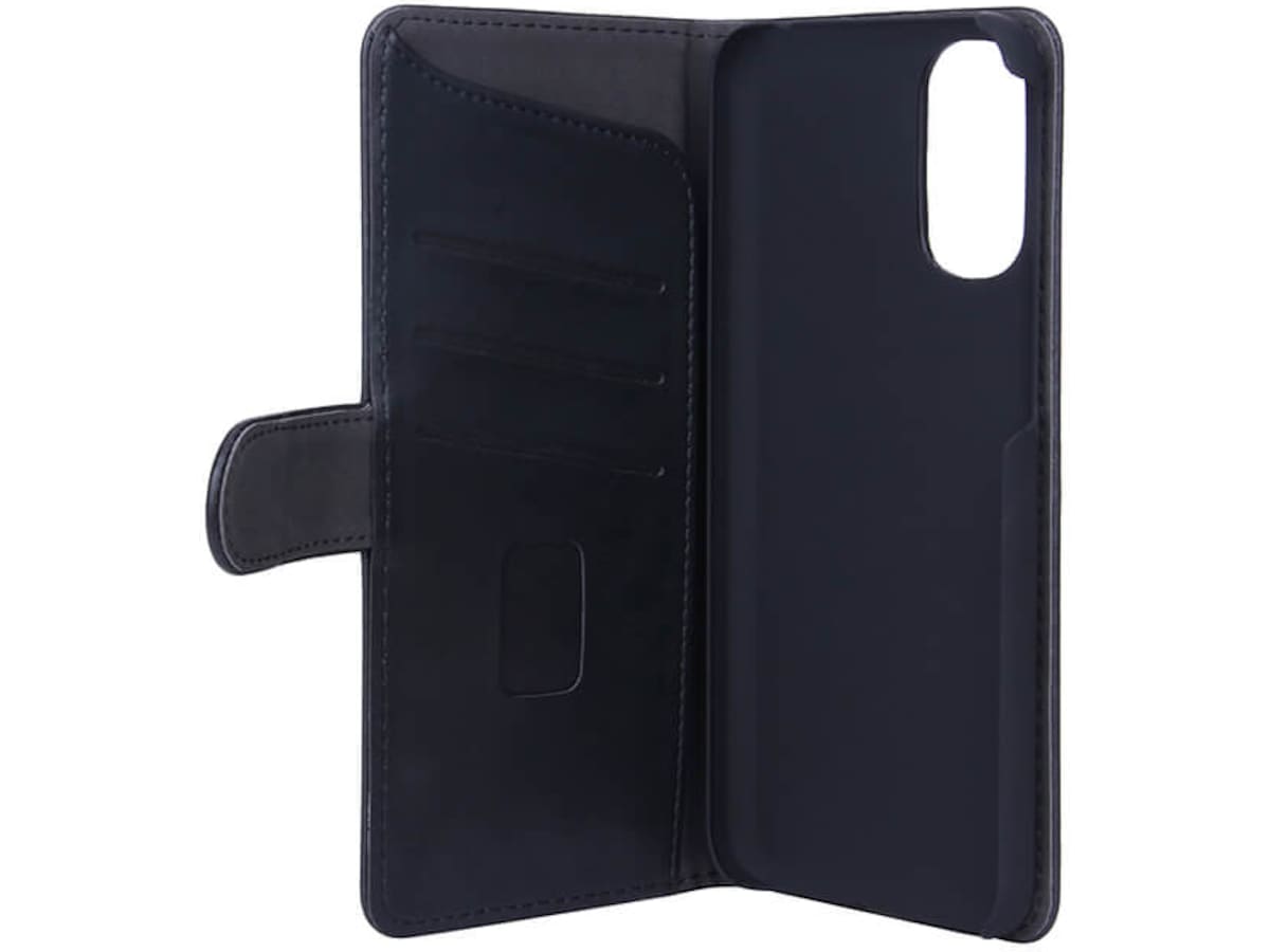En smart och praktisk kombination av skyddande fodral och plånbok till smarttelefonen. Plånboksfodralet är tillverkat av konstläder. Smarttelefonen är skyddad och sitter säkert med ett inbyggt lock, och du har full tillgång till alla kontakter och funktioner. Inbyggd stativfunktion, perfekt för att titta på filmer på tåg eller flygplan. Stängs med magnetlås.