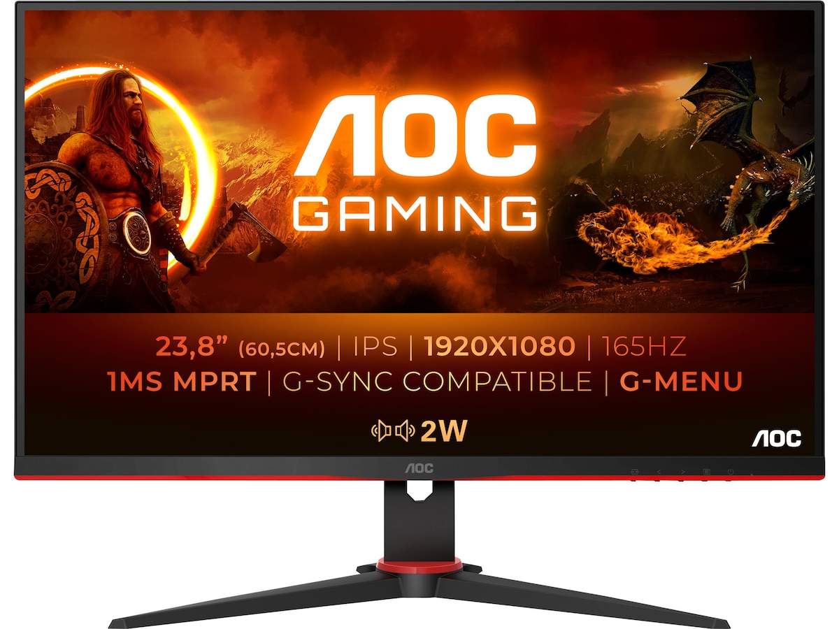 AOC 24G2SPU med 165 Hz uppdateringsfrekvens, 1 ms MPRT och FreeSync Premium-stöd eliminerar hack och lagg. Den 23,8-tums IPS-panelen med Full HD-upplösning ger färgexakta bilder.