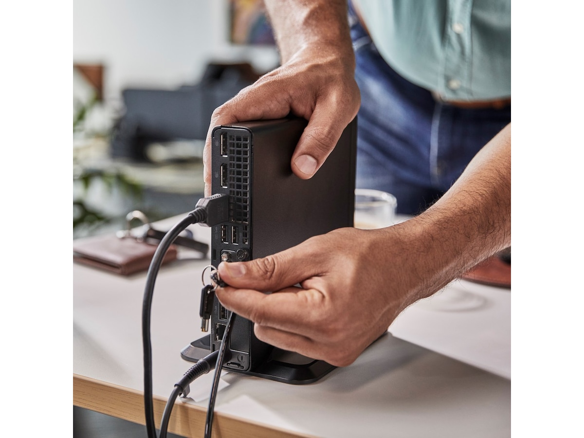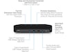 1 x USB-C 3.2 Gen 2x2 (1 på framsidan) (laddning), 1 x hörlurar/mikrofon (CTIA och OMTP-headsetstöd), 1 x HDMI, 1 x LAN (Gigabit Ethernet), 2 x DisplayPort 1.4a, 5 x USB 3.2 Gen 2 (2 på framsidan, 3 på baksidan) (två med väckningsfunktion, en som laddar)