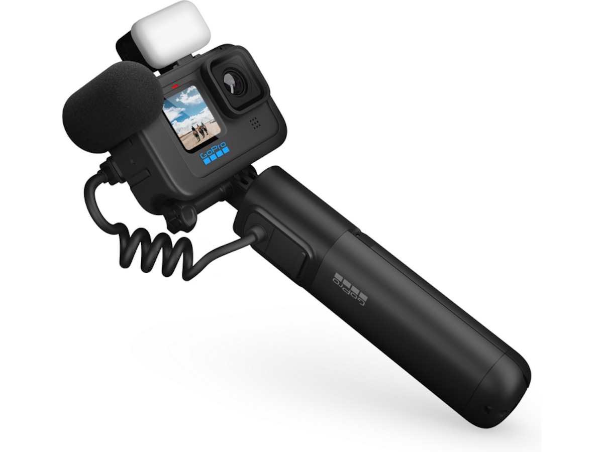 Det här kompletta systemet har 5,3K-video i proffskvalitet, Emmy® Award-vinnande HyperSmooth 5.0-videostabilisering, förbättrat ljud och kraftfull LED-belysning samt 4 timmars 4K-inspelningstid per laddning.