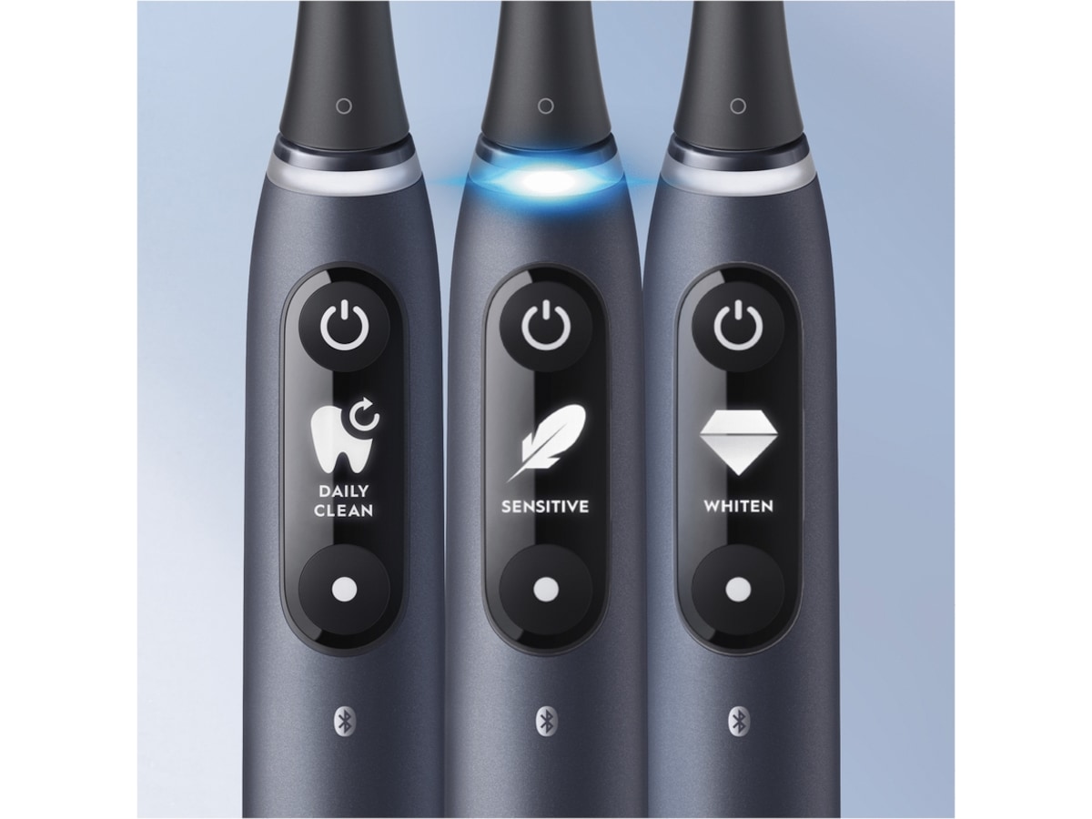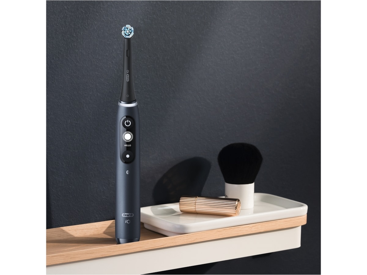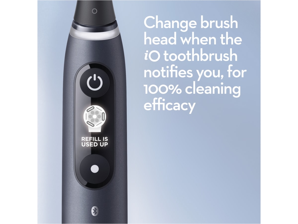 iO kombinerar Oral-B:s unika runda borsthuvud med skonsam rengöringskraft från mikrovibrerande borststrån.