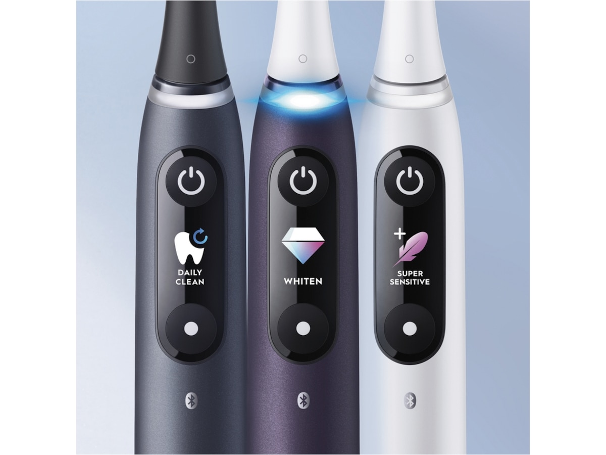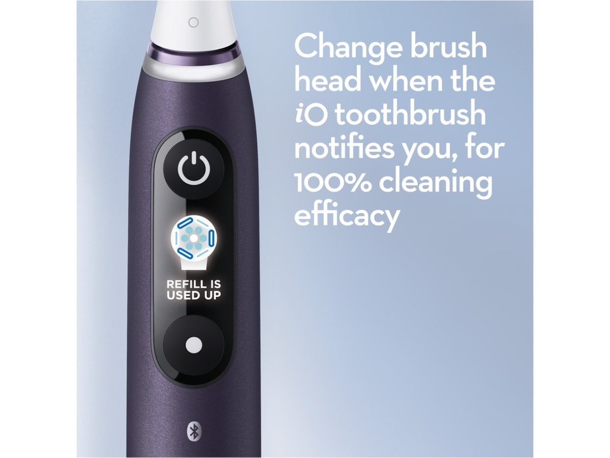 iO kombinerar Oral-B:s unika runda borsthuvud med skonsam rengöringskraft från mikrovibrerande borststrån.
