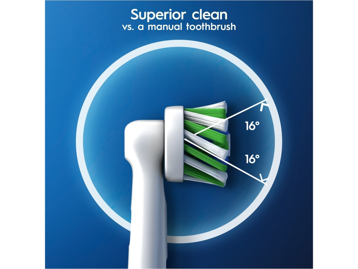 Som ett av Oral-B:s refillborsthuvuden i premiumsegmentet har CrossAction-borsthuvudet 16 graders perfekt vinklade borststrån för att angripa plack och avlägsna upp till 100 % mer plack jämfört med en vanlig manuell tandborste.