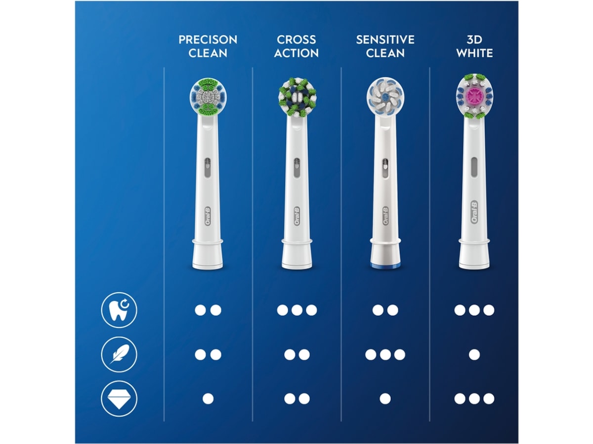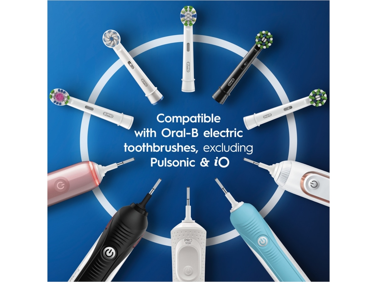 - Endast äkta borsthuvuden från Oral-B är utformade för att garantera 100 % passform med din Oral-B-tandborste och bästa rengöringseffekt upp till 160+ borstningstillfällen