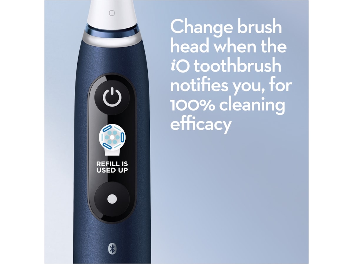 iO kombinerar Oral-B:s unika runda borsthuvud med skonsam rengöringskraft från mikrovibrerande borststrån.