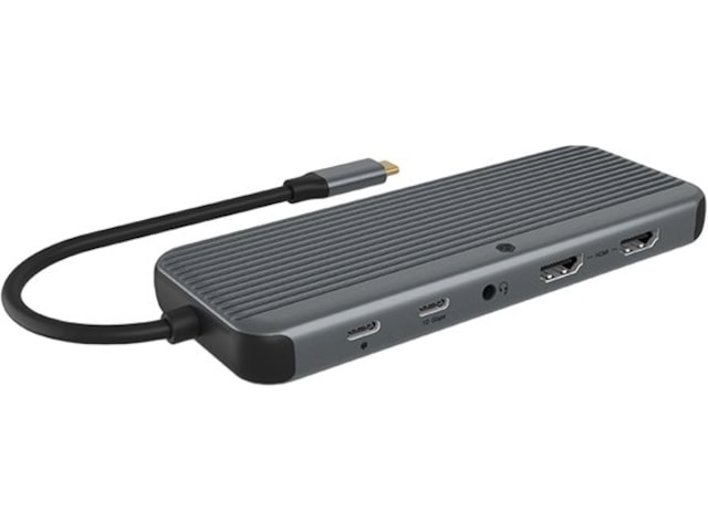 Den praktiska DockingStation hanterar inte bara en skärm med 8K-upplösning vid 30 Hz, utan tre samtidigt. Videoanslutningar görs via två HDMI- och en DisplayPort-anslutningar. En förutsättning är att värddatorn stöder DisplayPort Alt-läget.