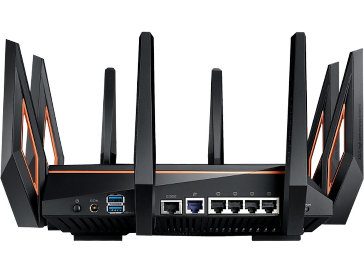 Förutom den otroliga trådlösa prestandan har GT-AX11000 en 2,5G WAN/LAN-port för upp till 2,5 gånger snabbare dataöverföring än vanlig Ethernet. Routern drivs av en 1,8 GHz 64-bitars fyrkärnig CPU för att enkelt kunna hantera onlinespel, ladda upp USB-dataöverföringar och driva LAN-partyn. För ökad bekvämlighet finns det en anpassningsbar knapp på routerns framsida så att du omedelbart kan styra en valfri funktion, t.ex. Aura RGB-belysning, Game Boost eller DFS-banden.