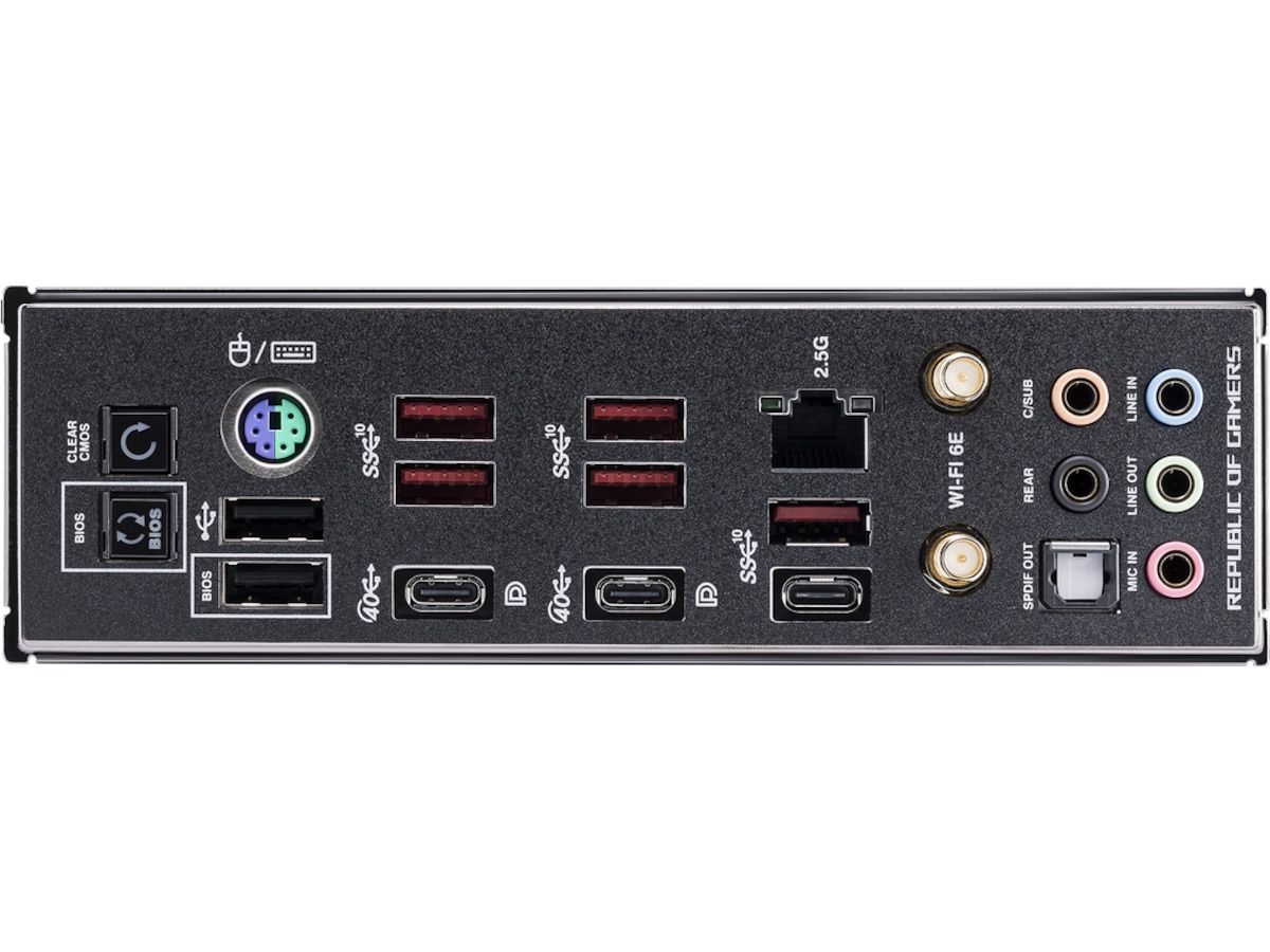 • Snabbaste spelanslutningen: PCIe® 5.0, inbyggt Gen 5 M.2, ROG GEN-Z.2-kort med PCIe 5.0-stöd, USB 3.2 Gen 2x2-kontakt på fronten med stöd för Quick Charge 4+, dubbla USB4® Type-C-portar