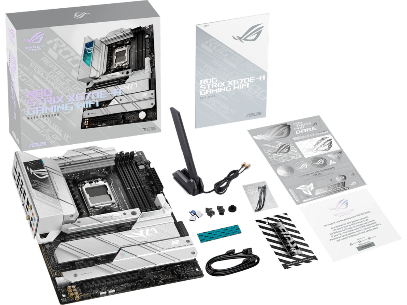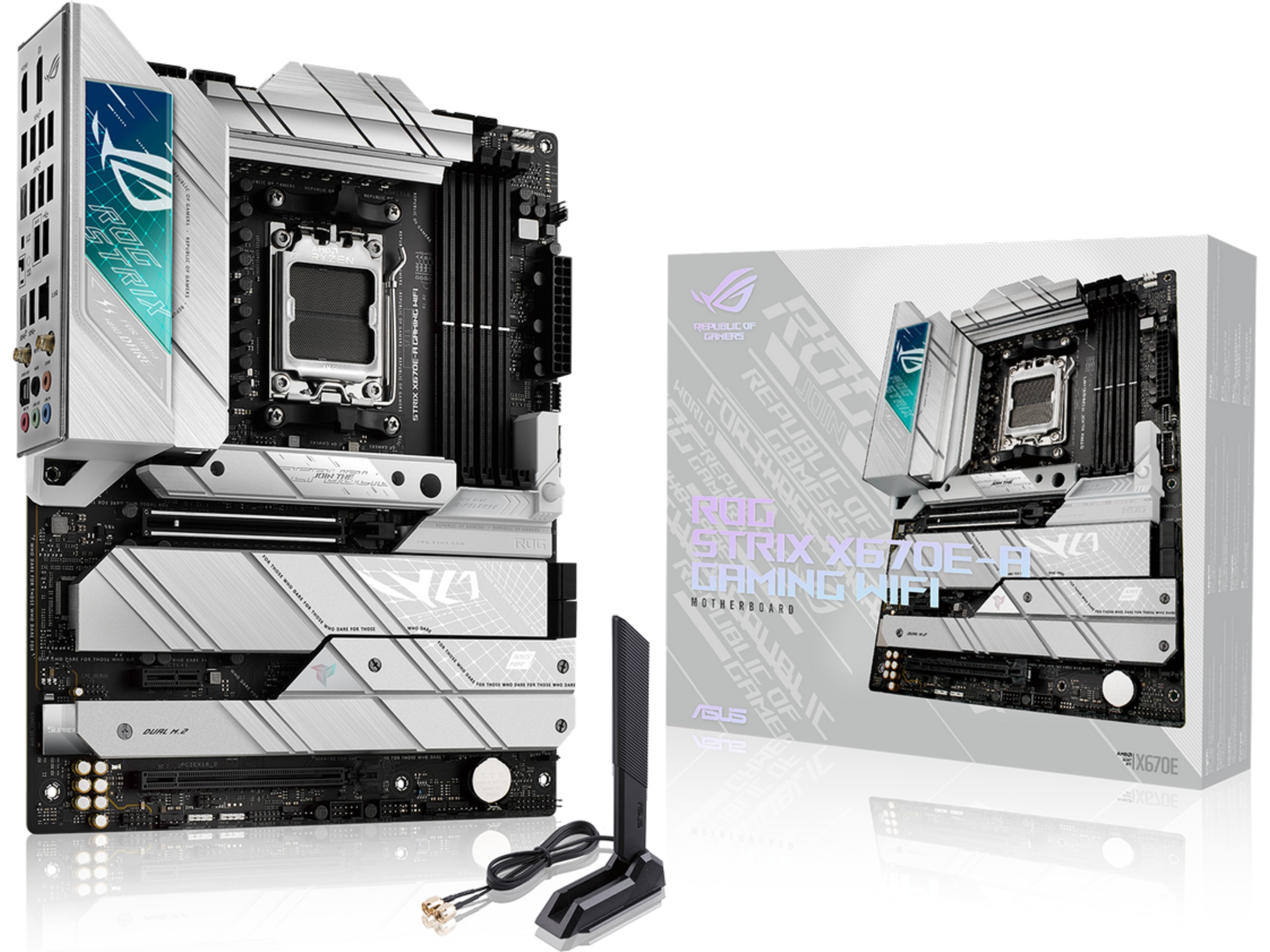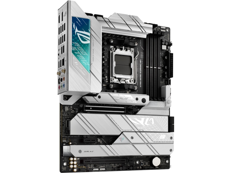 Gör dig redo för nästa generation med den eleganta ROG Strix X670E-A Gaming WiFi. Dess svarta PCB och vita detaljer är en snygg kontrast till silverfärgade kylflänsar som betonar förstklassig effekt till processorerna i AMD Ryzen™ 7000-serien. Exklusiva ROG-överklockningsverktyg, fullständiga PCIe 5.0-funktioner och DDR5-stöd är inforgade, vilket lägger till unikt skräddarsydd prestanda och AM5 väsentligheter till ditt gaming-bygge.