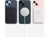 *iPhone 14 Plus har testats under kontrollerade laboratorieförhållanden och har enligt IEC-standard 60529 en salt-, stänk- och dammtålighetsklass IP68 (maximalt djup på 6 meter i upp till 30 minuter). Stänk-, spill- och dammresistensen är inte permanenta förhållanden. Hållbarheten kan försämras på grund av normalt slitage. Ladda aldrig en våt iPhone. Användarhandboken beskriver hur du rengör och torkar den. Garantin täcker inte skador som orsakats av vätska.