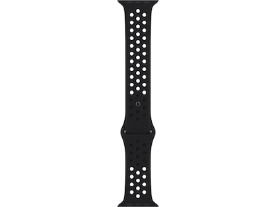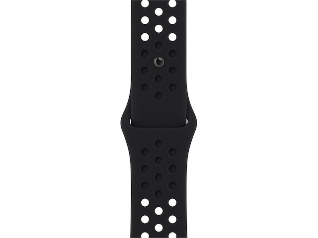 Det är tillverkat med formpressade hål som släpper igenom luft och som gör Nike-sportbandet både tåligt och starkt, men samtidigt förvånansvärt mjukt. Det har färgflingor som skapar ett slumpmässigt mönster som gör varje armband helt unikt. Det mjuka, täta materialet sitter följsamt runt handleden och känns skönt mot huden. Ett stiftspänne i aluminium ger stiftet en ny matt finish.