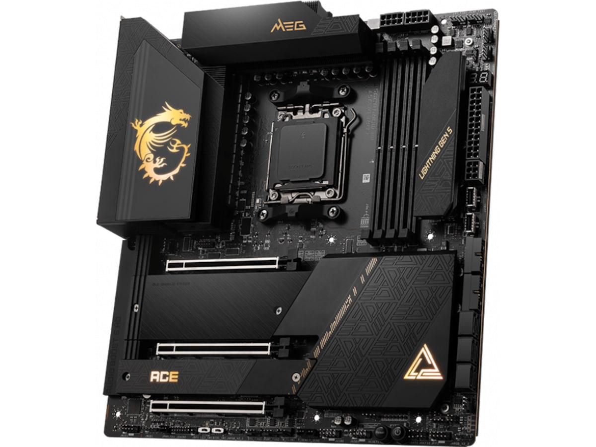 Blixtsnabb spelupplevelse: PCIe 5.0-platser, Lightning Gen 5 x4 M.2, Front USB 3.2 Gen 2x2 20G med 60W USB-strömförsörjning.