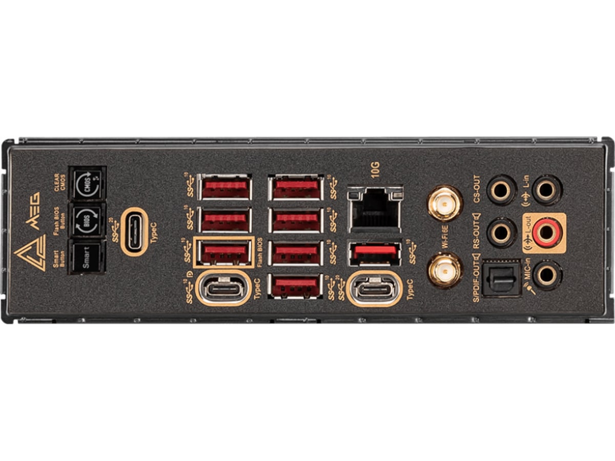 1 x LAN (10Gigabit Ethernet), 1 x ljudutgång (center/subwoofer) - mini-jack, 8 x USB 3.2 Gen 2, 2 x USB-C 3.2 Gen2x2, 1 x ljudingång - mini-jack, 1 x HDMI, 1 x USB 3.2 Gen 1, 1 x DisplayPort, 1 x mikrofon - mini-jack, 2 x antenn, 1 x ljudutgång - mini-jack, 1 x SPDIF-utgång