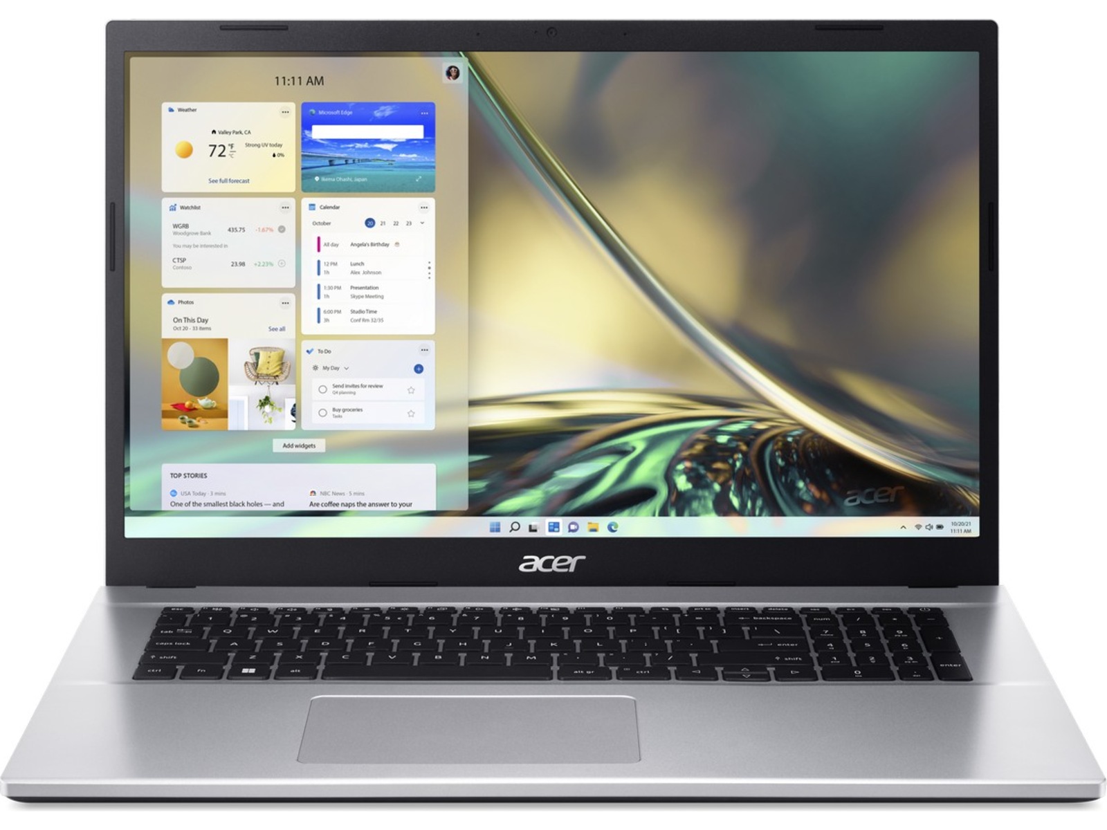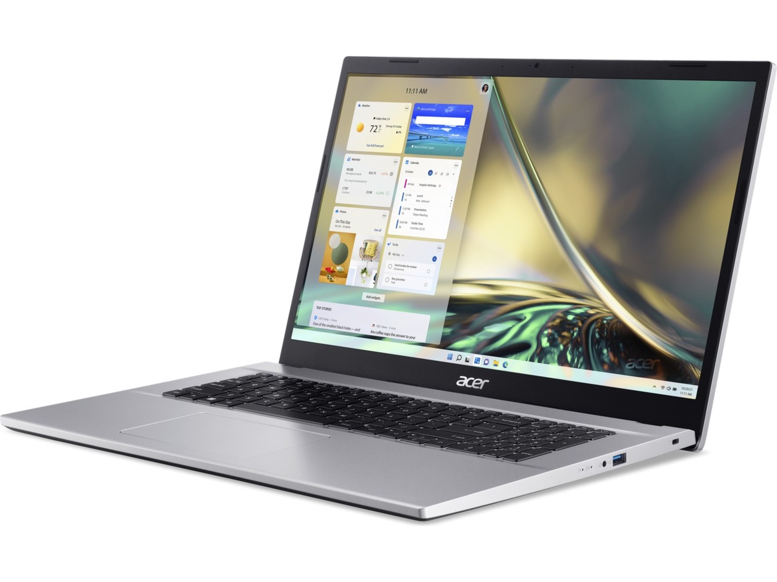 Aspire 3 har ett lågprofils gångjärn för en diskret design och finns i tre färger. Det långvariga batteriet gör att den här enheten kan gå från rum till rum, perfekt för familjens hem.