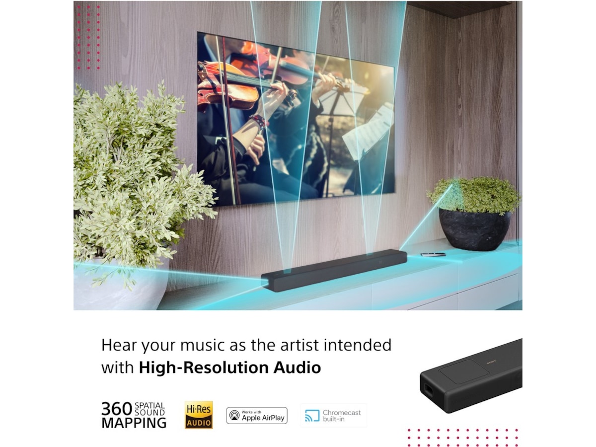 Genom att ansluta till HT-A5000 till en kompatibel BRAVIA TV blir TV-skärmen en del och förbättrar allt ditt innehåll, tack vare Acoustic Center Sync. Anslut din smarta enhet till HT-A5000 för att streama dina favoritljudfiler i alla rum med hjälp av de inbyggda funktionerna Bluetooth, Airplay2, Spotify Connect eller Google ChromeCast.