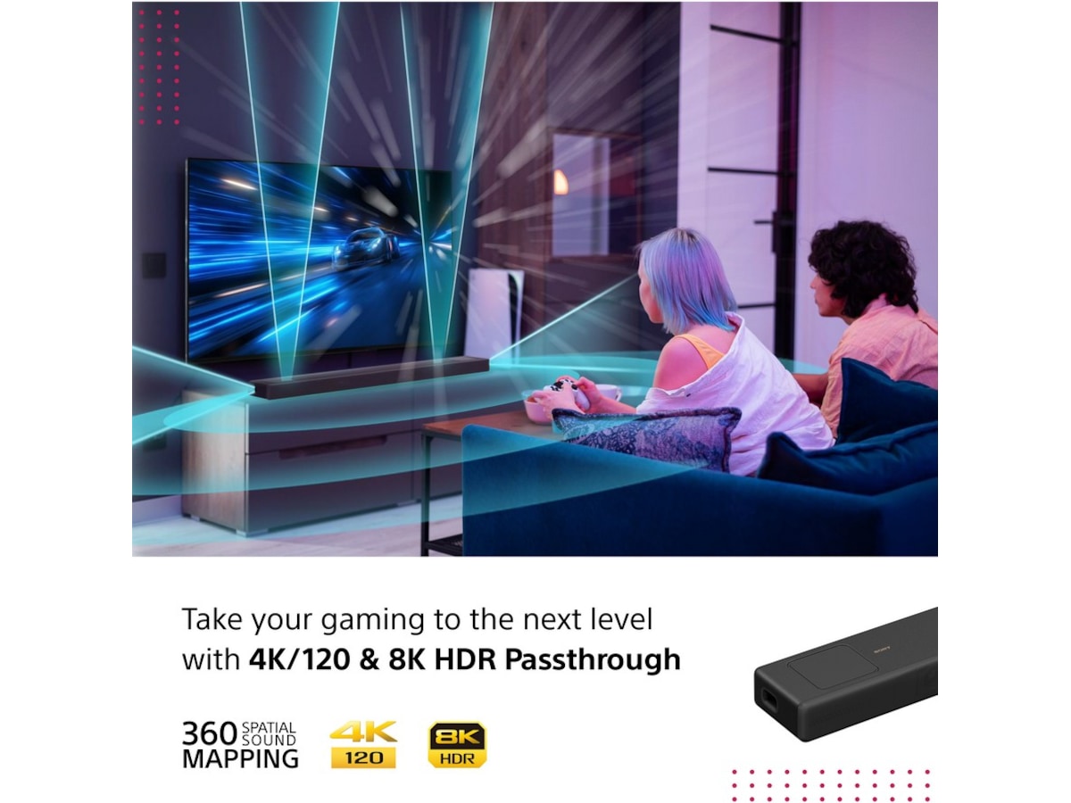 Med 4K, 4K 120FPS, 8K passthrough-teknik och Dolby Vision-stöd, stöder HT-A5000 de senaste formaten för filmer och spel.