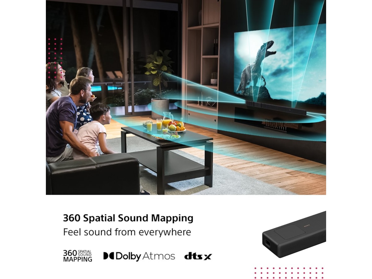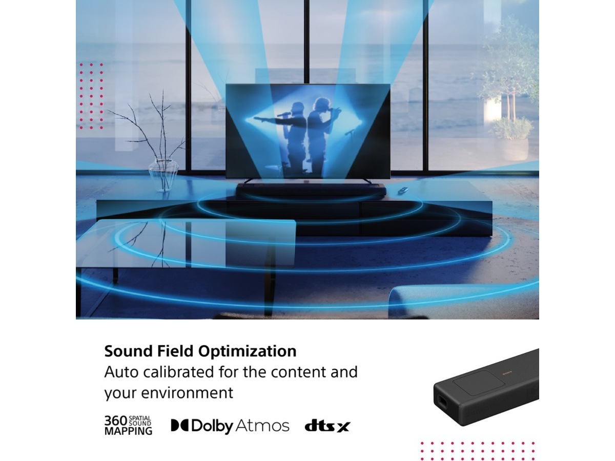 Sound Field Optimization-tekniken mäter intelligent layouten av ditt rum genom att använda de inbyggda mikrofonerna för att ställa in ljudet för bästa möjliga ljudupplevelse. Lägg till de bakre högtalarna som tillval för en unik 360 Spatial Sound Mapping-upplevelse, som levererar det ultimata uppslukande filmiska ljudet och placerar dig mitt i händelsernas centrum.