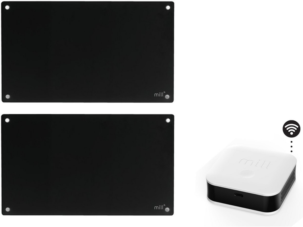 Mill Glass WiFi Gen 3 Panelelement 700W (svart) 2pk + Sense