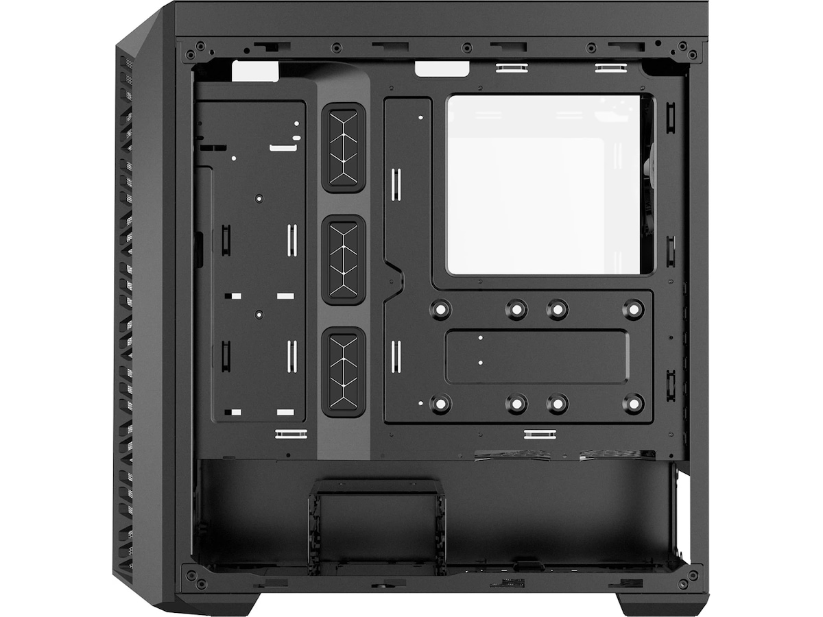 Att visa upp din rigg genom en rökig frontpanel är något du inte visste att du behövde. DarkMirrors frontpanel förstärker kontrasten från hårdvarubelysningen och skapar en pittoresk visning av de interna komponenterna. För att kyla de inbyggda spelsystemen är hela frontpanelens sidor täckta med nätventilation, vilket säkerställer att de tre medföljande ARGB-fläktarna matas med en betydande mängd luft.