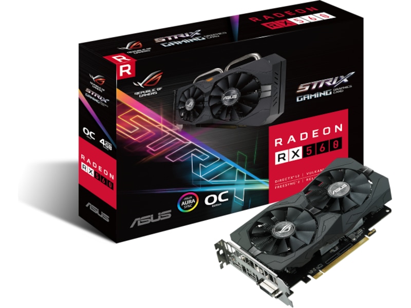 ROG Strix Radeon RX 560 OC edition 4GB GDDR5 med Aura Sync RGB för bästa eSport & 1080p spel