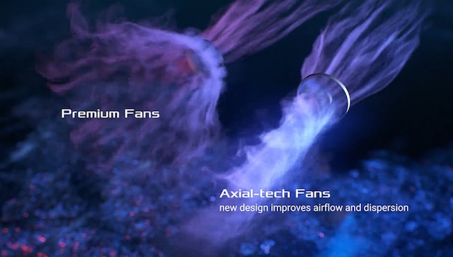 - ROG-kylflänsartäcker kritiska komponenter. Lägre temperaturer ger längre livslängd och lägre ljudnivå