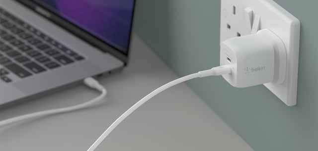 - Integrerad GaN-teknik ger en kraftfull, effektiv laddning som inte överhettas