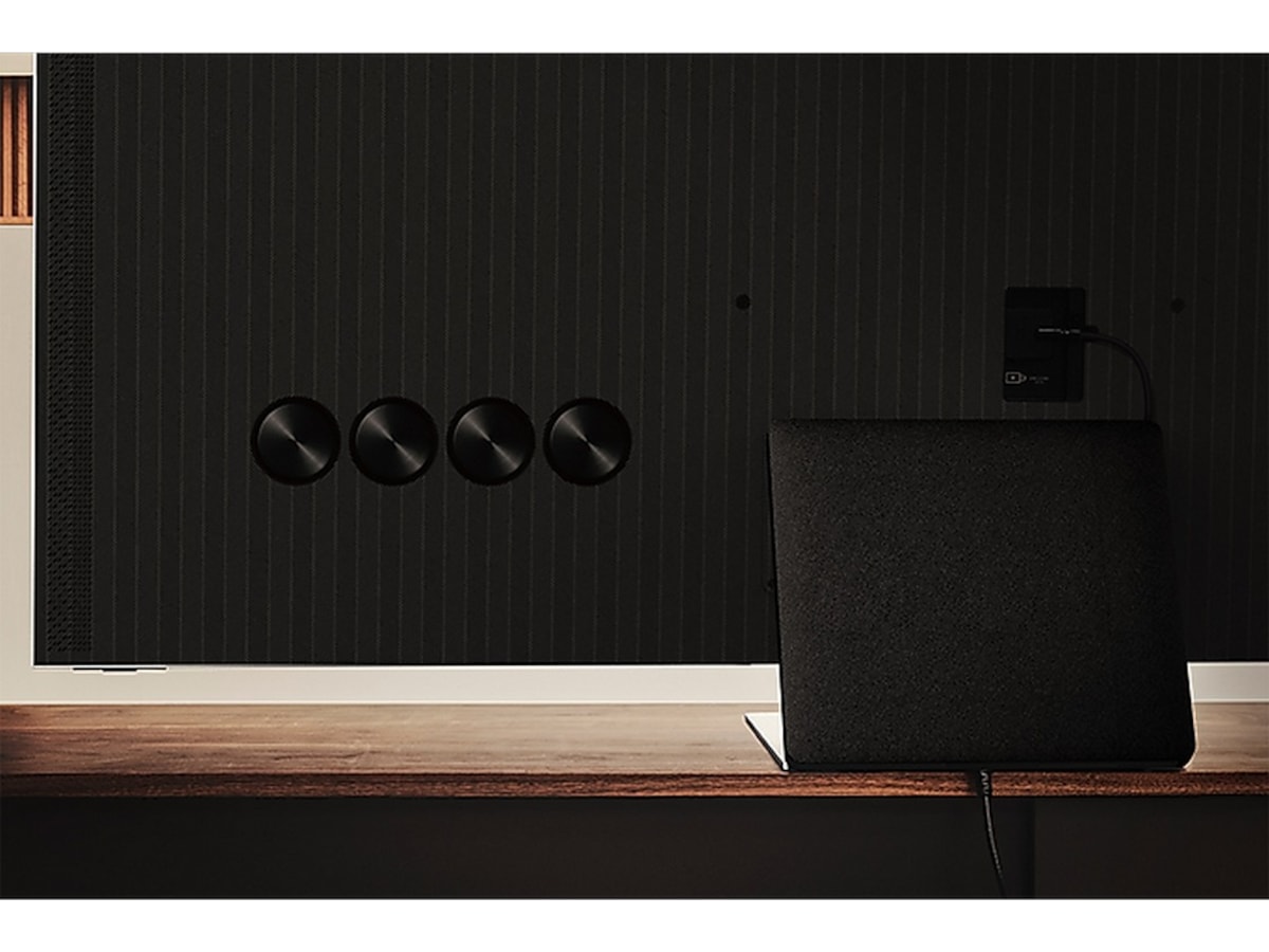 Tunn design i matt stål med smart One Connect box. Enkelt och stilrent.