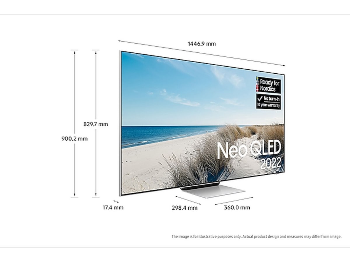 * När du köper 2022 QLED, Neo QLED eller Neo QLED 8K erbjuder Samsung 10-års skärminbrännings-garanti. Garantin gäller i 10 år från köpdatum. För att garantin ska gälla krävs en kopia av köpkvittot och registrering på Samsungs webbplats inom 90 dagar efter köpet. Gäller från 1 apr. 2022 - 31 aug 2023.