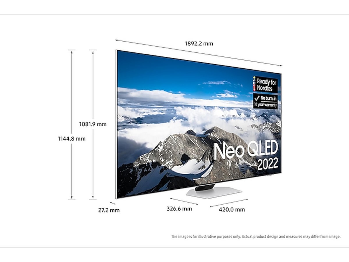 * När du köper 2022 QLED, Neo QLED eller Neo QLED 8K erbjuder Samsung 10-års skärminbrännings-garanti. Garantin gäller i 10 år från köpdatum. För att garantin ska gälla krävs en kopia av köpkvittot och registrering på Samsungs webbplats inom 90 dagar efter köpet. Gäller från 1 apr. 2022 - 31 aug 2023.