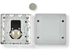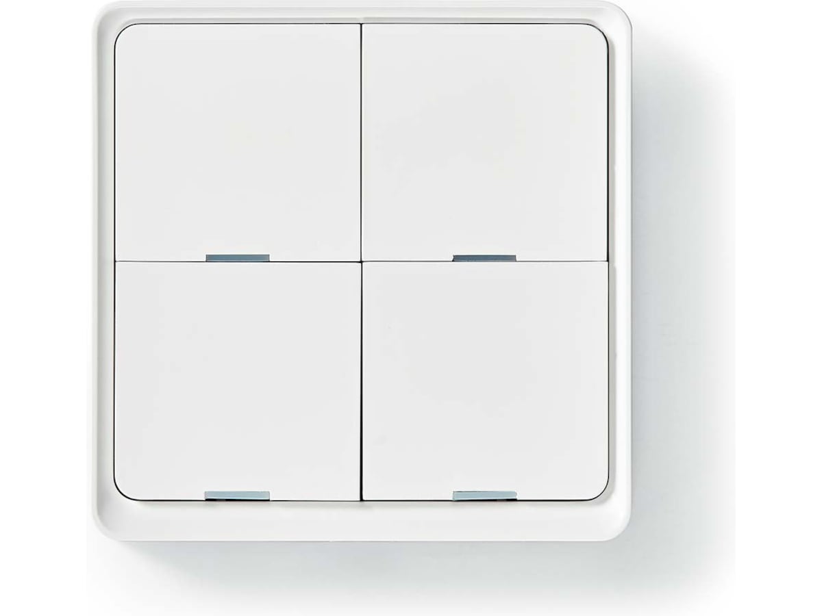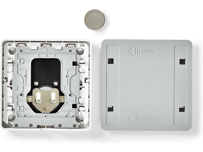 Måtten 87 x 87 mm gör att den ser ut som en vanlig strömbrytare när den placeras på väggen, men du kan själv bestämma var den ska monteras med skruvar eller den medföljande dubbelhäftande tejpen. Det medföljande batteriet räcker i upp till 12 månader vid normal användning. Du får ett meddelande när batterinivån börjar bli låg så att du kan byta ut det vid behov.