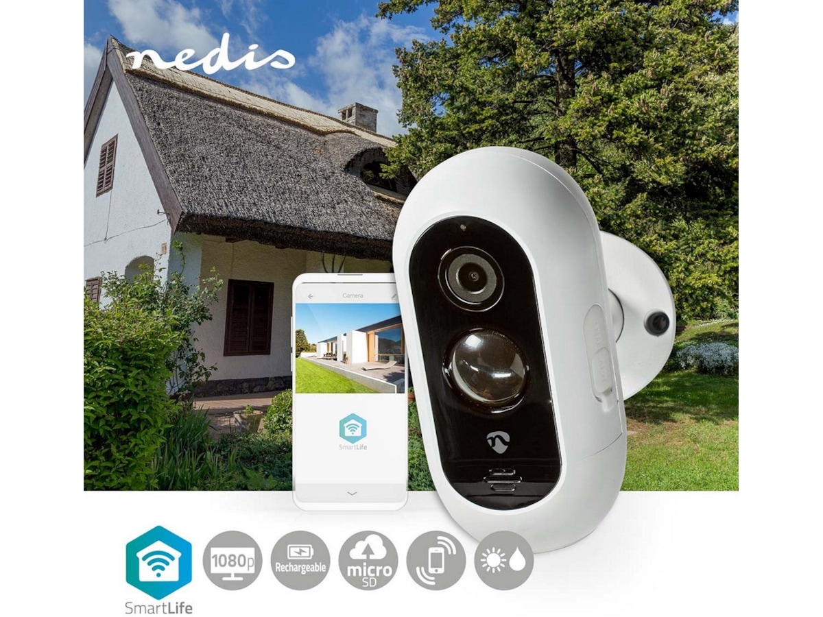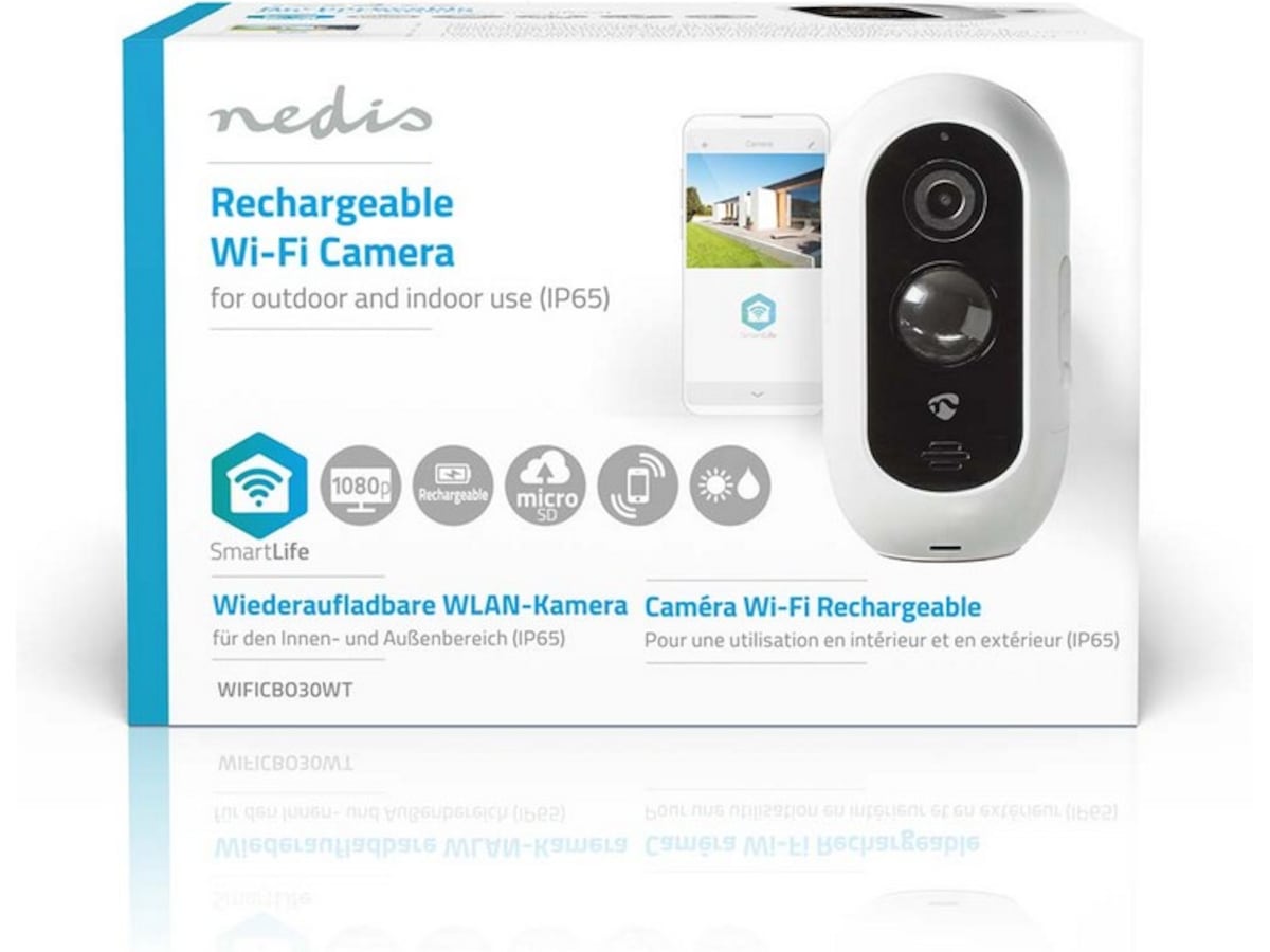 Den är laddningsbar och behöver inte placeras i närheten av ett eluttag. Kameran kan enkelt anslutas till ditt befintliga Wi-Fi-nätverk för att övervaka ditt hus eller din trädgård och spela in ljud eller rörelser, oavsett om du är hemma eller på resande fot. Nedis® SmartLife-app meddelar dig i händelse av rörelse och ljud, så att du kan ingripa i tid.