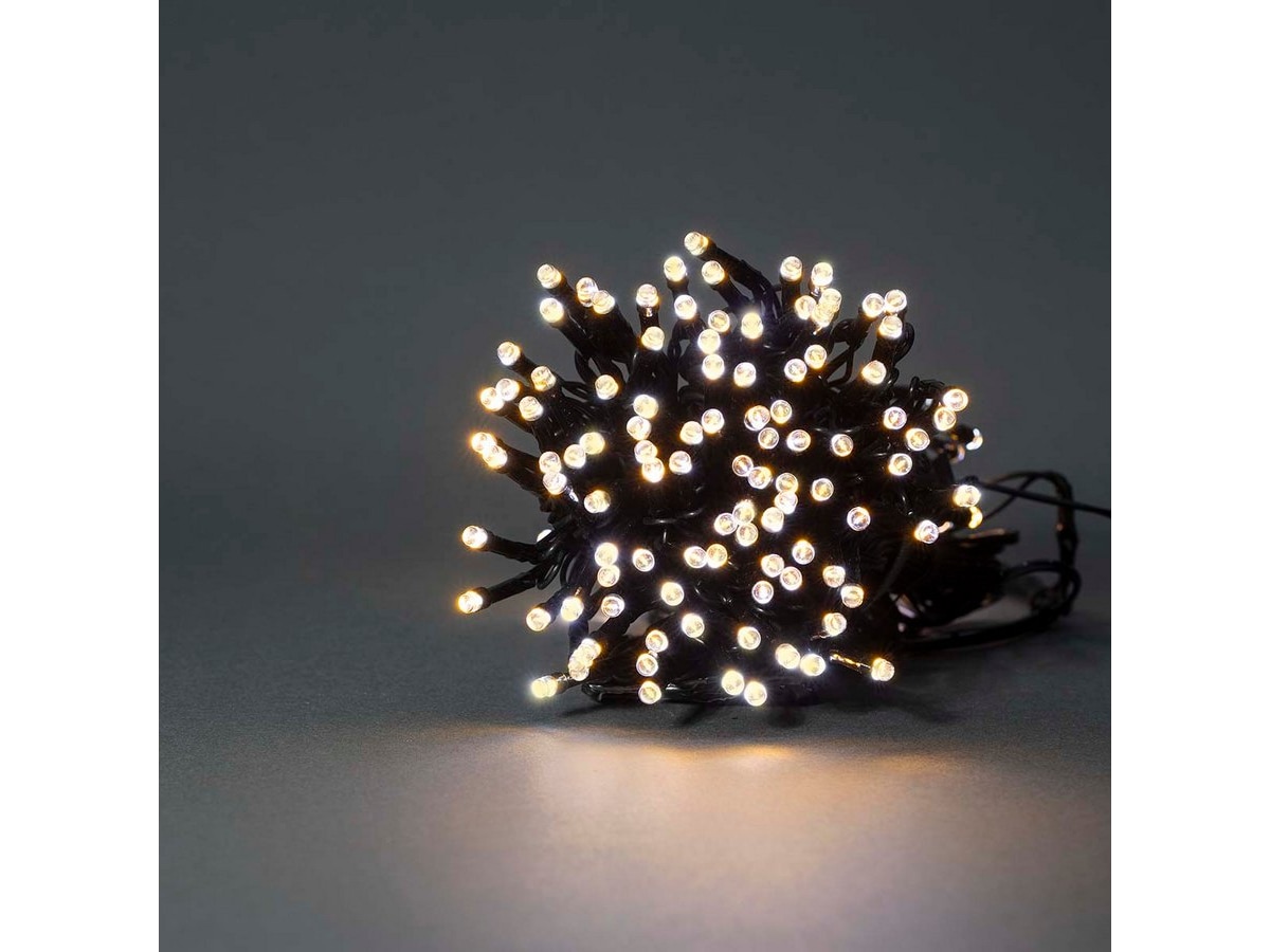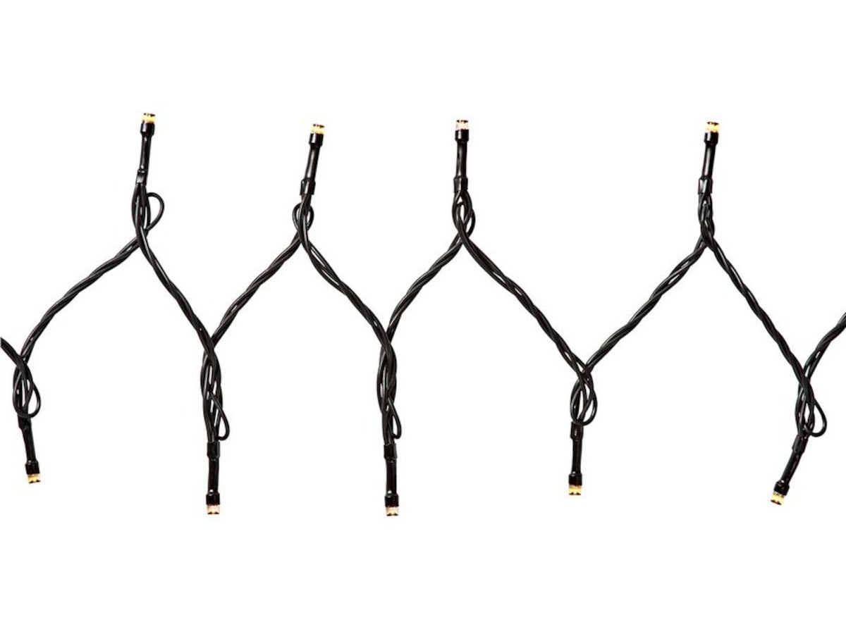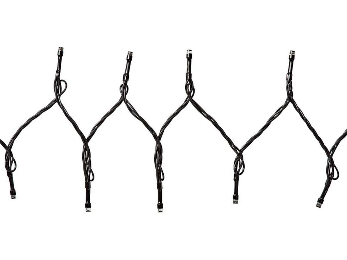 Kablets sorte farve passer fint på alle slags træer eller baggrunde uden at forstyrre deres udseende. Den 10 meter lange kæde har i alt 100 LED-lys, der sidder 10 centimeter fra hinanden. En samlet længde på 5 meter sikrer, at ledningen er lang nok. Meget praktisk, hvis din stikkontakt er lidt længere væk. Kæden kan bruges både indendørs og udendørs.