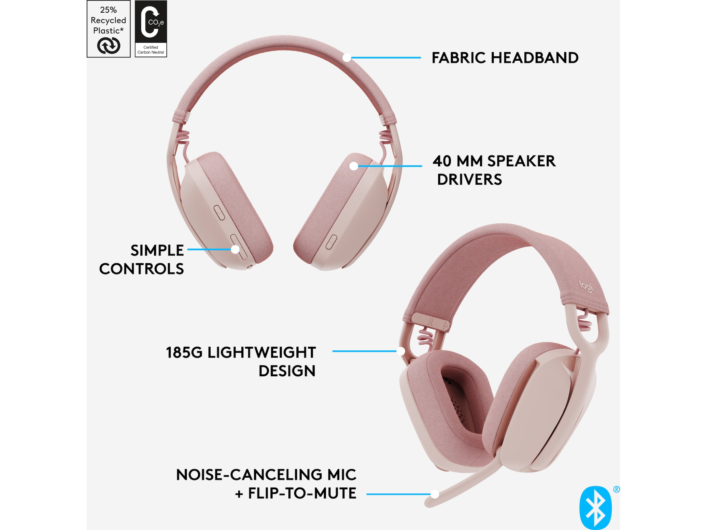 Logitech Zone Vibe 100 trådlös headset (rosa)
