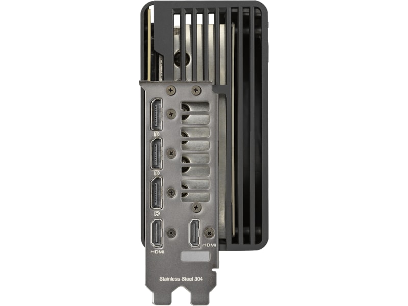 A vapor chamber featuring embedded heatpipes draws heat into a fin array spanning most of the card's 3.5-slot footprint, keeping the GPU and components ultra-cool.