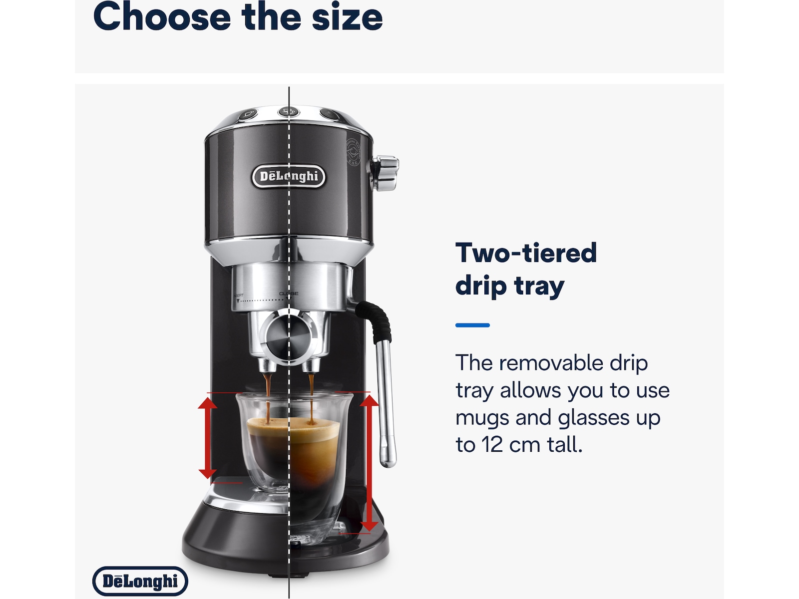 Den justerbara droppbrickan passar en rad koppar, små eller höga, upp till 12 cm i höjd