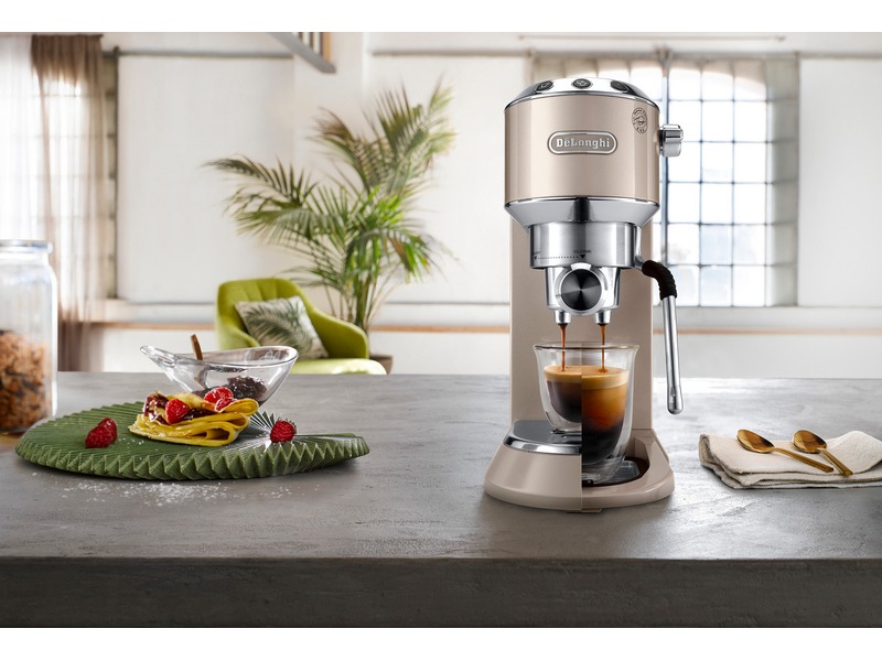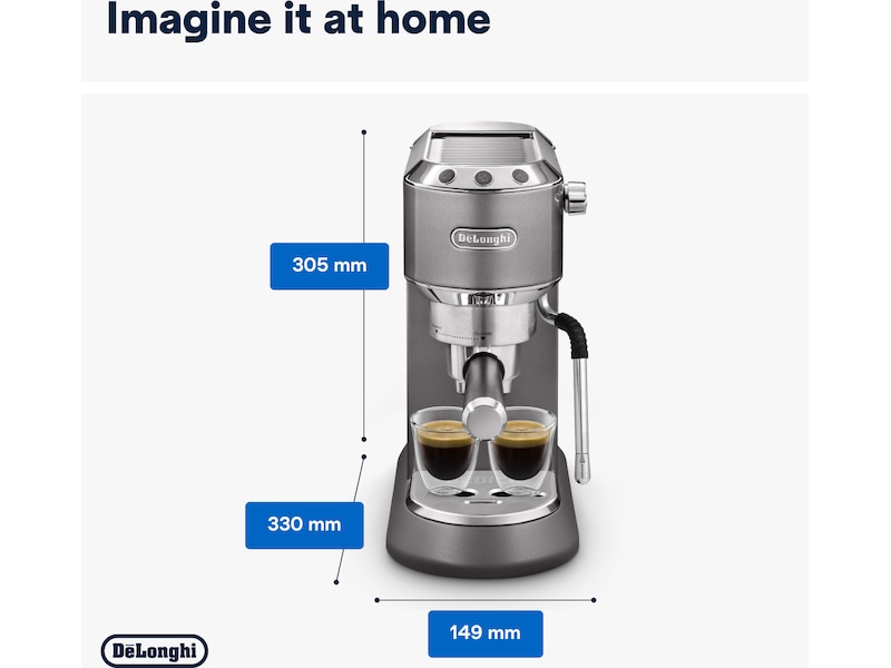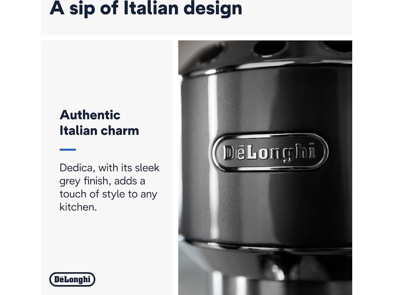 Den manuella kaffemaskinen Dedica Arte ger extra stil åt den unika och ikoniska Dedica-designen. Den här kaffemaskinen är kompakt och kraftfull på samma gång och är det perfekta komplementet till din köksbänk, för fylligt morgonkaffe utan krångel, en silkeslen mikroskumtextur för dina favorit-mjölkbaserade drycker och ultimat användarvänlighet och bekvämlighet.
