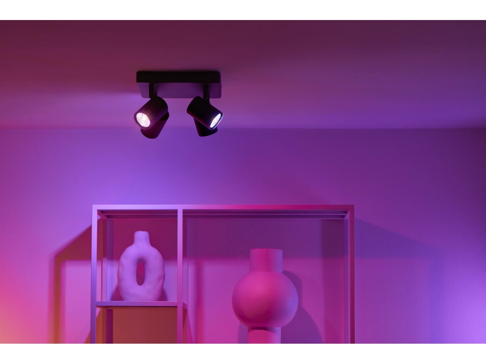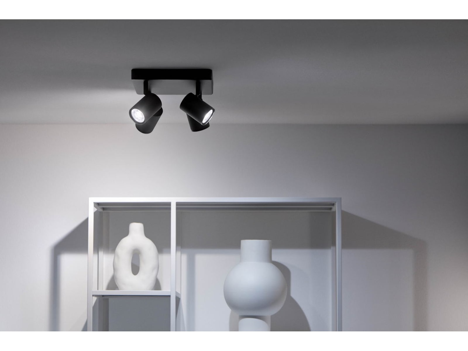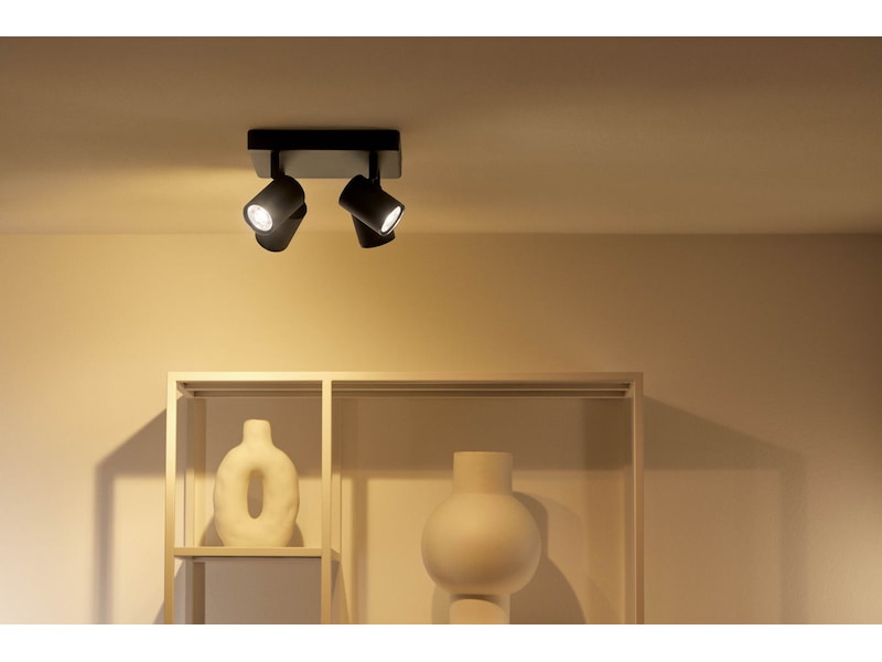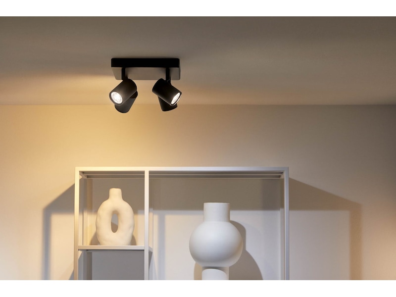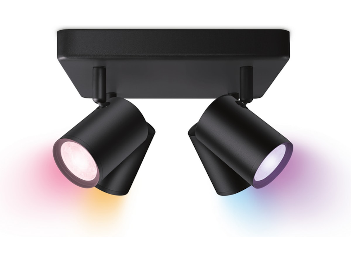 Med fyra justerbara huvuden får du en modern lampa i vitt som lyser upp och drar uppmärksamheten till de områden och föremål som du älskar mest. Ditt hem och dina ögon kommer att älska möjligheten att justera belysningen till 16 miljoner olika färger och välja ljusets intensitet och temperatur, så att du äntligen får den högkvalitativa LED-belysning som du förtjänar. Du kommer också att bli imponerad av bekvämligheten och tjusningen med dynamiska ljusscener och unika funktioner som fyller ditt hem med vackra, flerfärgade ljuseffekter. Njut av belysning som efterliknar havets vågor, en glödande eldstad, eller varför inte skapa en mjuk övergång i belysningen som följer dagens naturliga ljusmönster.