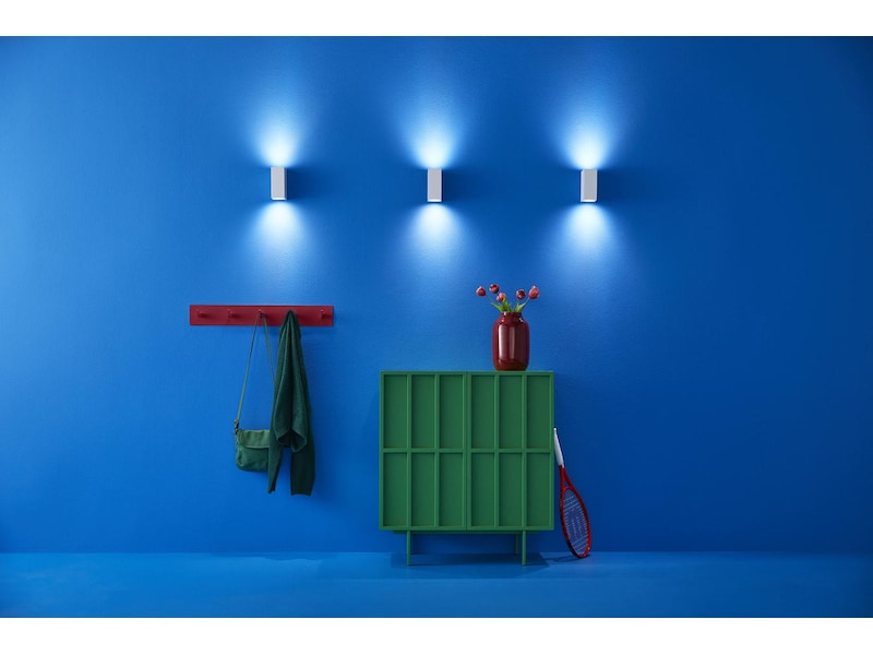 Släpp loss din fantasi och ge ditt hem extra personlighet med färgstarkt, stämningsgivande ljus som dansar på väggarna och skapar intressanta silhuetter av ljus och skugga. Du kommer att älska friheten att kunna välja mellan 16 miljoner olika färger och hela spektrumet av varma och kalla nyanser av vitt ljus. Och med dynamiska ljusscener har du möjlighet att skapa en alldeles unik stämning, där ljuset till exempel efterliknar dansande lågor - den perfekta scenen för att skapa en fantastisk atmosfär med den här vägglampan.