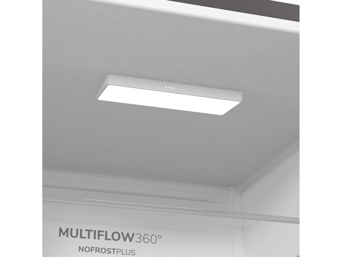 Ett av de bästa kylsystemen på marknaden installerat i frysfacket som förhindrar ansamling av is och frost och håller elförbrukningen nere. Resultatet är en optimal förvaring där avfrostning och rengöring inte längre är nödvändig. Paket eller bitar av frysta livsmedel fastnar inte i varandra och frysfacket hålls rent och snyggt.