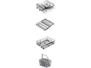 Övre korg Flyttbara pinnar, Ljuslås, Exklusiv, 2 vikbara glashållare, Knivställ, Rackhandtag, Fällbar rad med piggar, Porslinsskydd, Flexibel