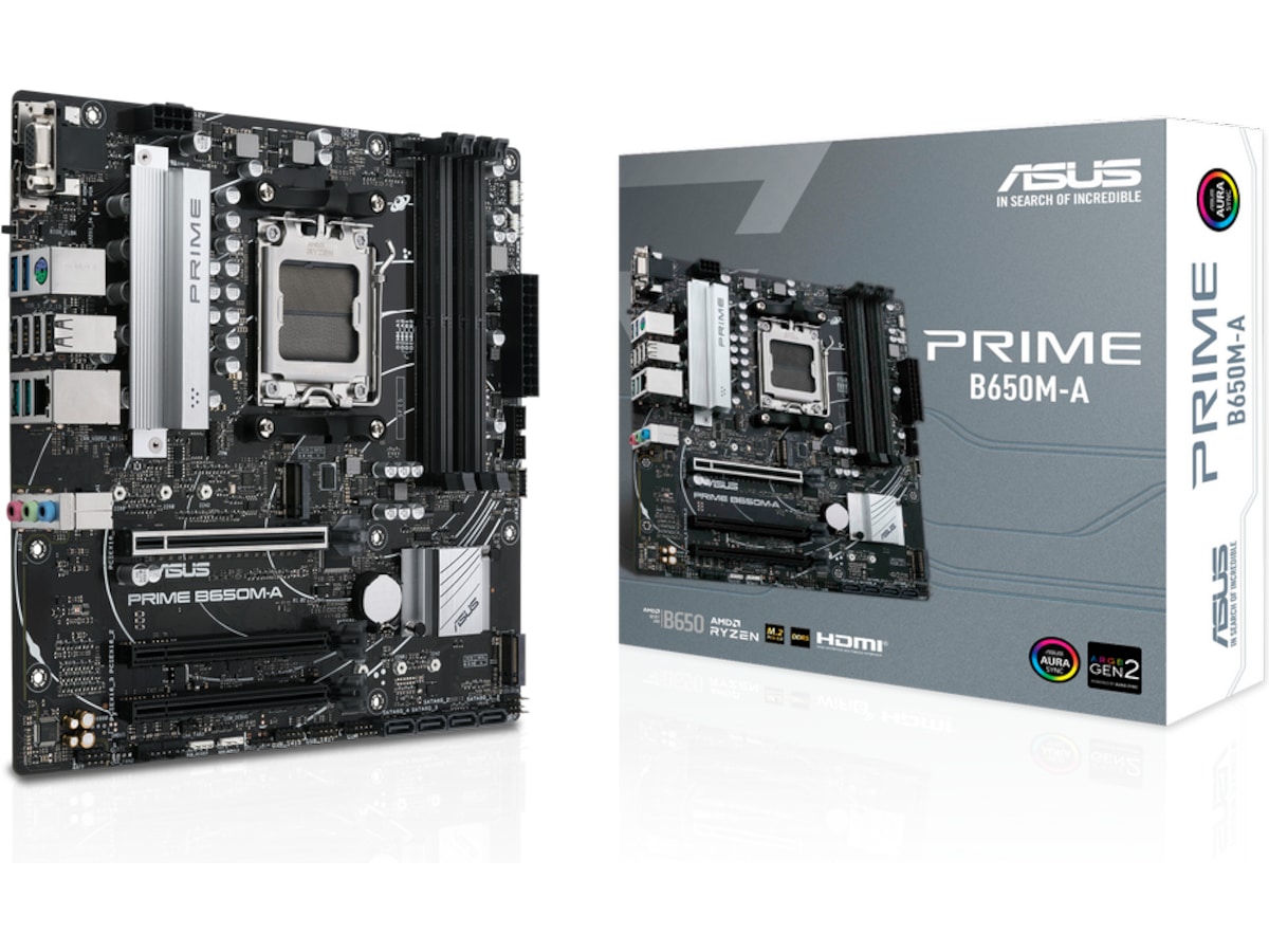 ASUS Prime-seriens moderkort är expertkonstruerade för att frigöra den fulla potentialen hos AMD Ryzen 7000-seriens processorer. PRIME B650M-A WIFI har en robust kraftdesign, omfattande kylningslösningar och intelligenta inställningsalternativ och ger användare och DIY-byggare en rad optimeringar av prestandan med hjälp av intuitiva funktioner i mjukvara och inbyggd programvara.