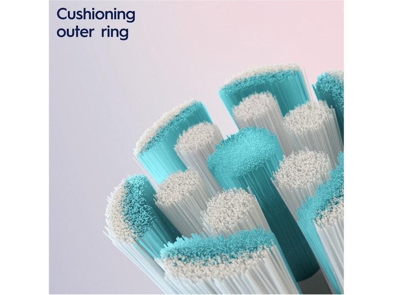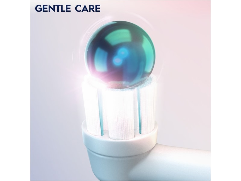Oral-B iO Gentle Care har upp till 4000 mjuka borststrån och en stötdämpande ytterring för att exakt anpassa sig till tändernas böjning och skydda tandköttet