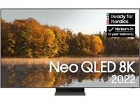 * När du köper 2022 QLED, Neo QLED eller Neo QLED 8K erbjuder Samsung 10-års skärminbrännings-garanti. Garantin gäller i 10 år från köpdatum. För att garantin ska gälla krävs en kopia av köpkvittot och registrering på Samsungs webbplats inom 90 dagar efter köpet. Gäller från 1 apr. 2022 - 31 aug 2023.