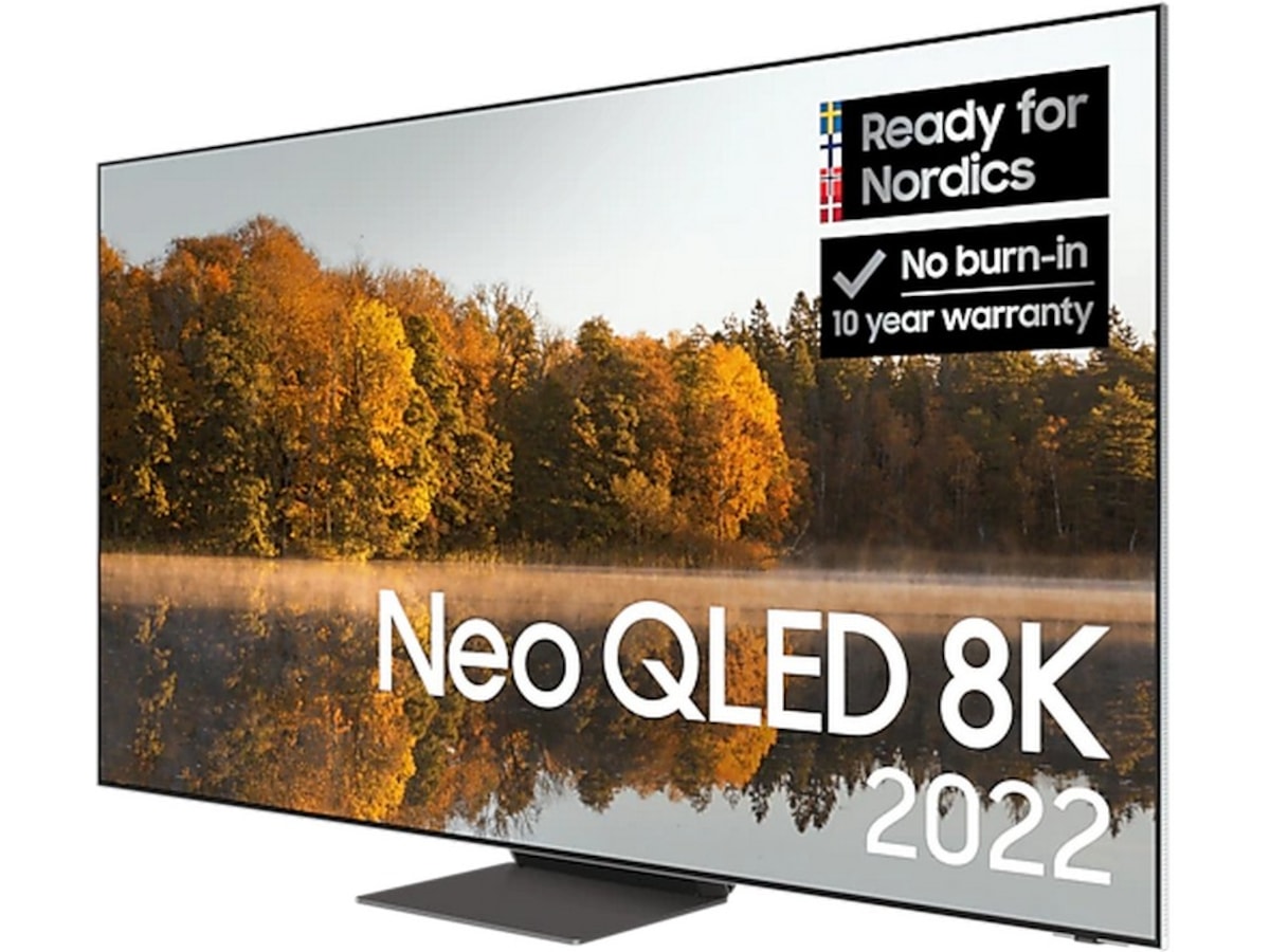 * När du köper 2022 QLED, Neo QLED eller Neo QLED 8K erbjuder Samsung 10-års skärminbrännings-garanti. Garantin gäller i 10 år från köpdatum. För att garantin ska gälla krävs en kopia av köpkvittot och registrering på Samsungs webbplats inom 90 dagar efter köpet. Gäller från 1 apr. 2022 - 31 aug 2023.