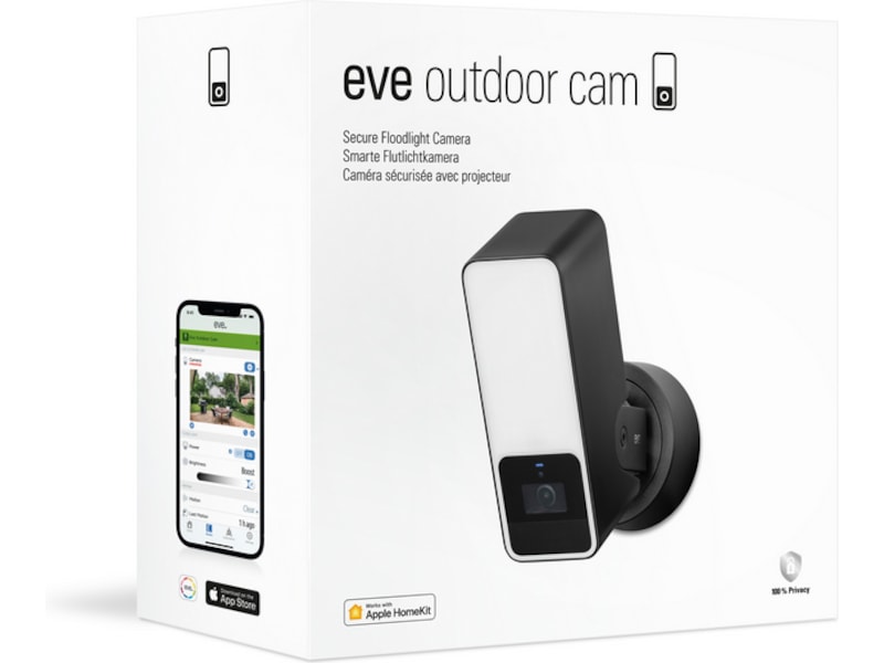Eve Outdoor Cam är designad exklusivt för Apple HomeKit Secure Video. All aktivitet som upptäcks lagras säkert och helt krypterad i din iCloud. Det bästa med alla Eve-tillbehör är hur de skyddar din integritet.