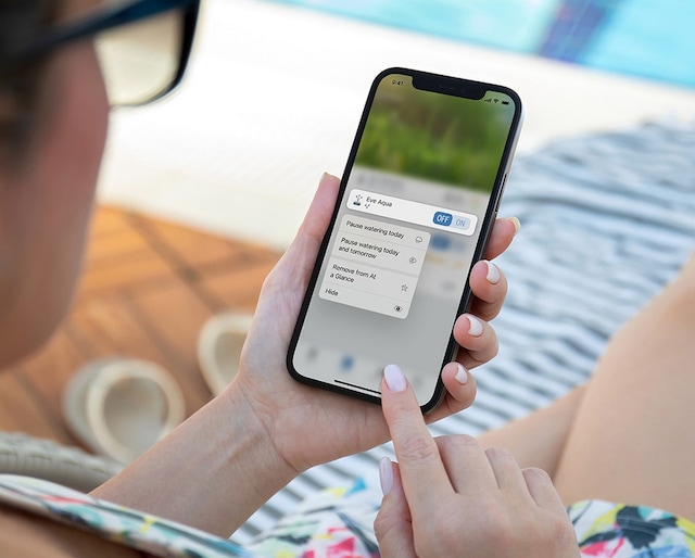 På semester och sett på väderrapporten att en värmebölja är på väg att slå till hemma? Inga problem. Tack vare din hemhubb - HomePod, HomePod mini eller Apple TV - kan du hålla kontakten och enkelt vattna din trädgård när du är på språng.