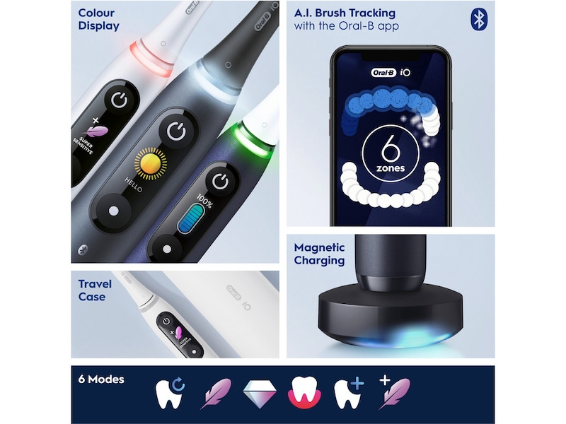 iO kombinerar Oral-B:s unika runda borsthuvud med skonsam rengöringskraft från mikrovibrerande borststrån.