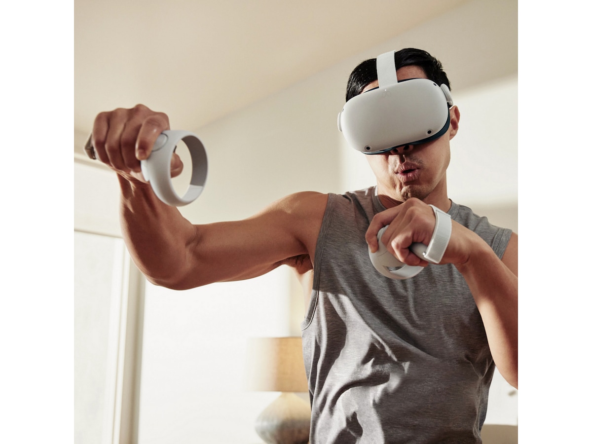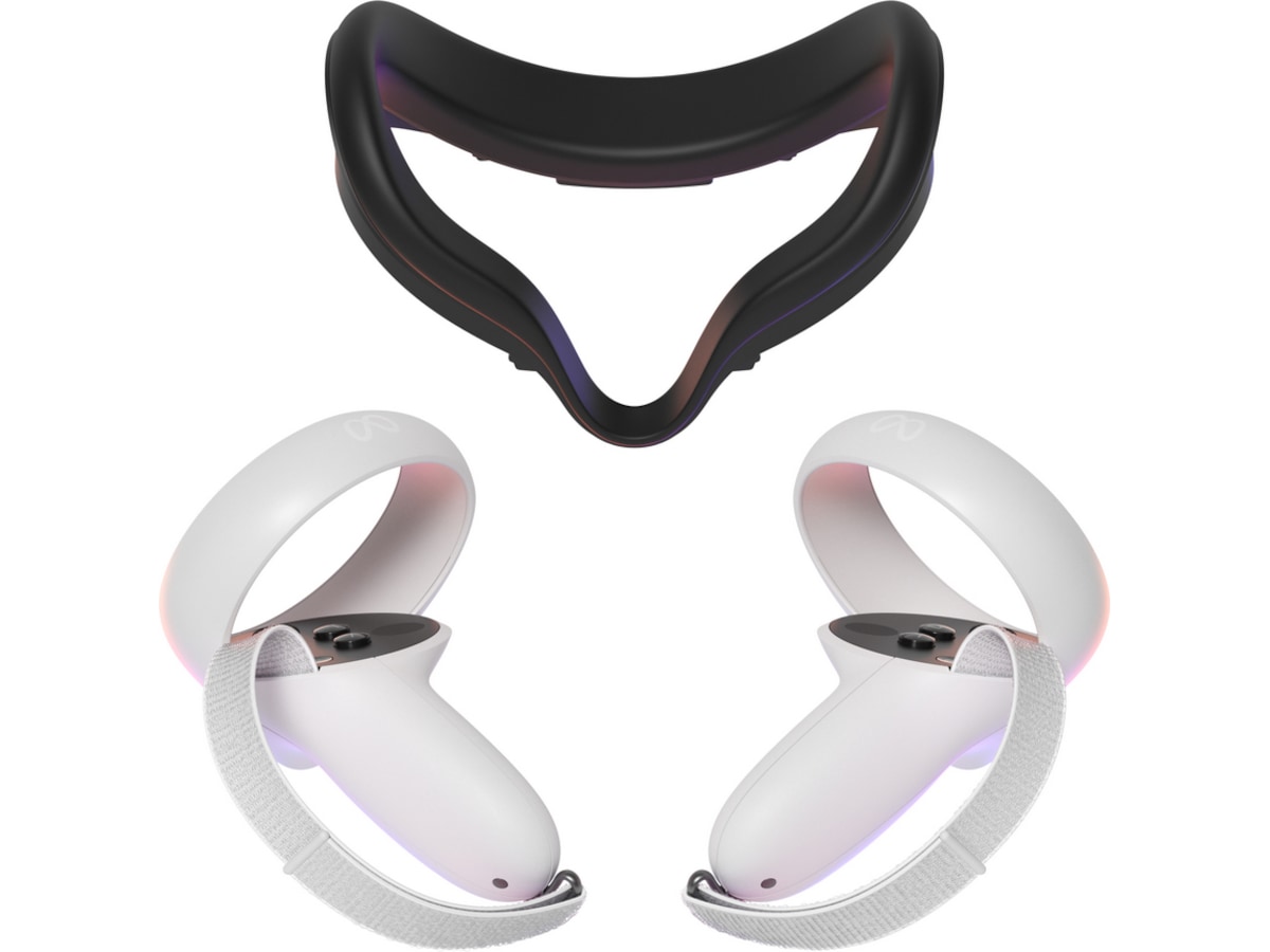 Meta Quest 2 Active-paket innehåller tillbehör designade för att hålla ditt system rent och säkert under energiskt spelande och träningspass i VR. Den innehåller en avtorkbar ansiktsdel för enkel rengöring, och handledsremmar och justerbara knogband för att hålla dina kontroller stadigt i händerna när all action intensifieras.