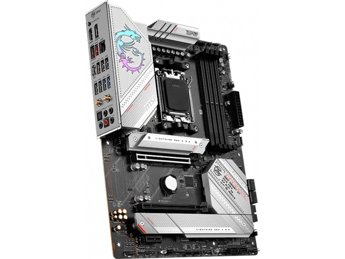 • Blixtsnabb spelupplevelse: PCIe 4.0-platser, Lightning Gen 5 x4 M.2, USB 3.2 Gen 2x2